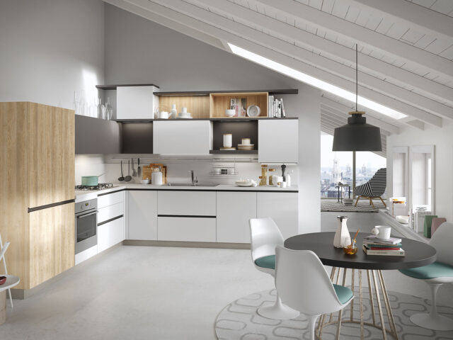 Joy is a handleless kitchen. Its sleek appearance and uncluttered surfaces accentuate the beauty of the materials and design details.
