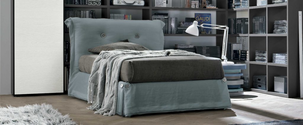 Fabric bed with finished back. Also available with a storage unit. Optional: duvet in fabric. Bed with finished back. Eco-leather is not recommended. Related products BedsBEDS FOR TEENAGER BEDROOMS: JOKER Read more BedsBEDS FOR TEENAGER BEDROOMS: SEVEN Read more BedsBEDS FOR TEENAGER BEDROOMS: TASCA Read more