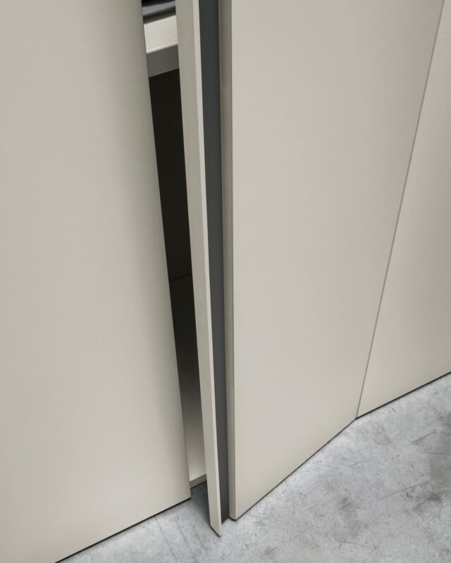 A special, decorative strip along the whole height of the door becomes the handle and can be customised using trendy colours and materials, chosen to suit your personal taste.