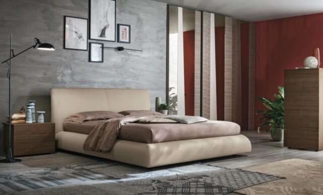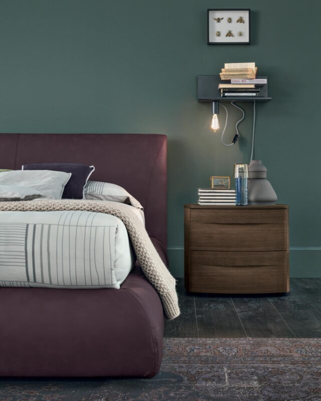 The power of design fills the room and expresses itself in both the headboard and the bed frame. The special rounded shape of the frame wraps around and encloses the mattress for a new feeling of total comfort and wellbeing.