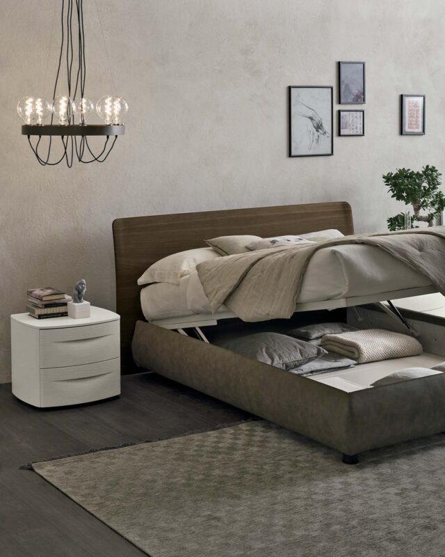 The slightly curved, floor-standing headboard distinguishes the Prado bed whose shape and shade create a soft, night-time atmosphere. Available with storage base. PHOTO FINISHES /Prado bed in heat-treated oak wood. Description Description Related products Wood bedsNARCISO Read more Wood bedsPRESTIGE BED Read more Wood bedsNIKKI Read more