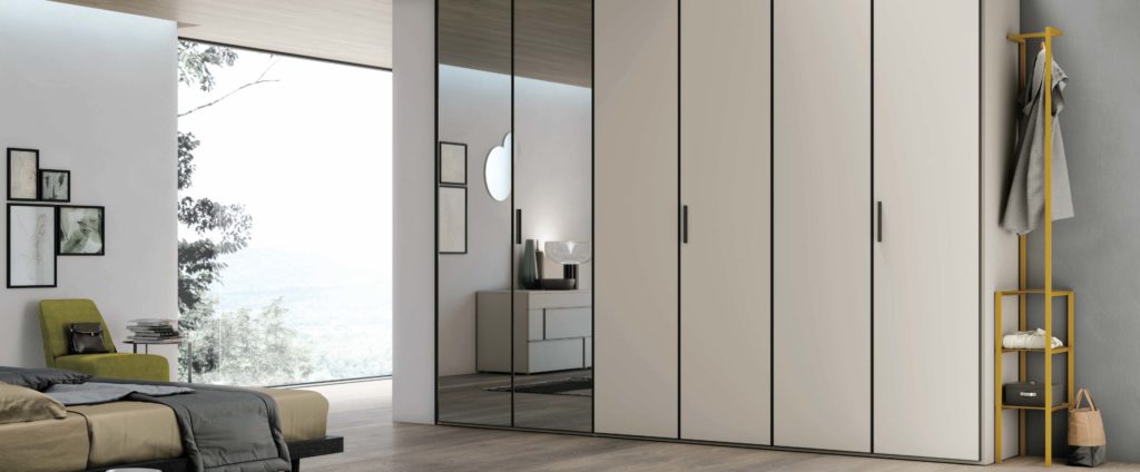 Photo finishes / Four satin mother of pearl 424 glass doors with matt anthracite 160 lacquered trims. Two grey 383 mirrored glass doors. Matt mother of pearl 124 lacquered carcass. Matt anthracite Segno handle. Description Description Related products Leaf door wardrobesMETROPOLIS HINGED DOORS Read more Leaf door wardrobesDENVER HINGED DOORS Read more Leaf door wardrobesDRESS HINGED DOORS Read more