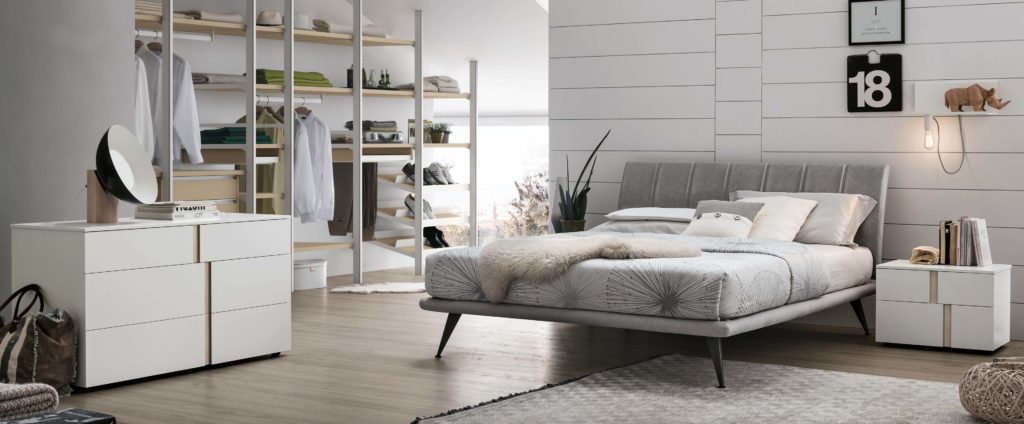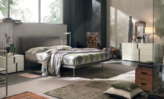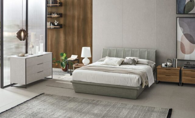 The vertical seams divide the headboard into seven parts that visually beat out its rythm. Regular, with just one dynamic accent in the slight curve, the bed is minimalist and linear. For those looking for quality details.
