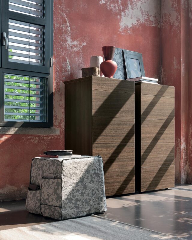 A fine decorative detail softens the rigorous design of objects. Elegant and essential appeal for practical and refined bedroom furniture. Contemporary style and great traditional craftsmanship.
