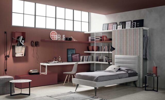 Fortebraccio bookcase with integrated corner desk. Fortebraccio clothes tidy unit. Soft headboard with flared Vaschetta bed frame. Joy occasional table. Kelly sliding door wardrobe. Diagonal Tv panel. Description Description Related products UncategorizedKid's BedroomsTEENAGER BEDROOMS: COMPOSITION 02A Read more UncategorizedKid's BedroomsTEENAGER BEDROOMS: COMPOSITION 03 Read more UncategorizedKid's BedroomsTEENAGER BEDROOMS: COMPOSITION 07A Read more